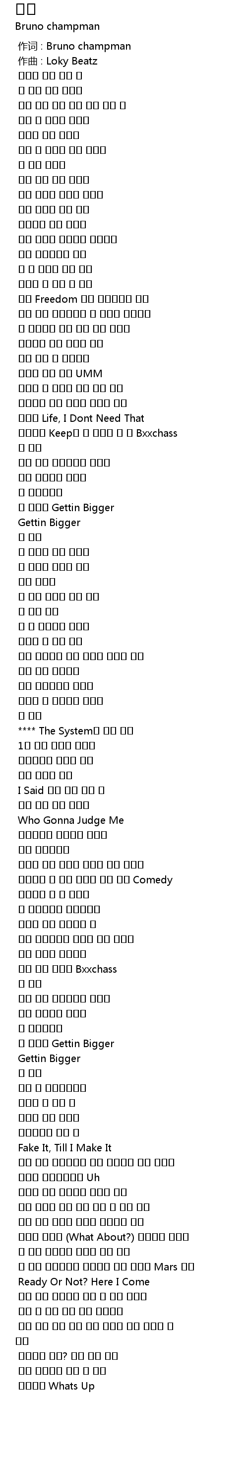 | [02:58.414] | 내 이름 브루노치면 챔프맨이 먼저 나오길 Mars 말고 |