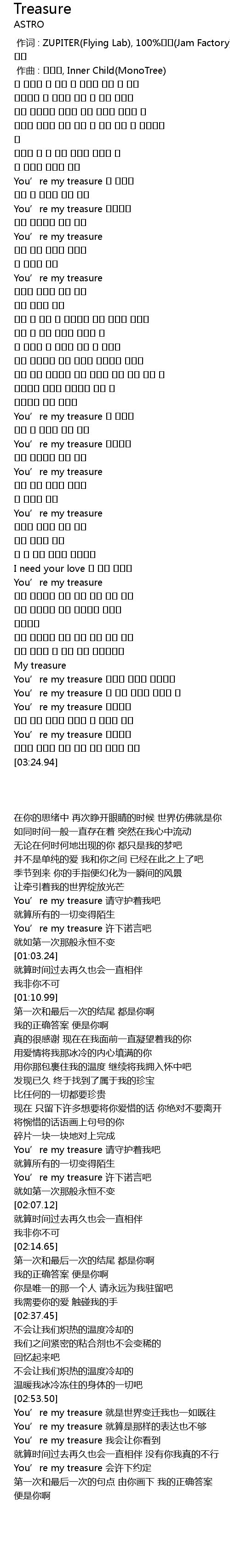 | [03:00.71] | You’re my treasure 그 어떤 표현도 모자란 걸 |