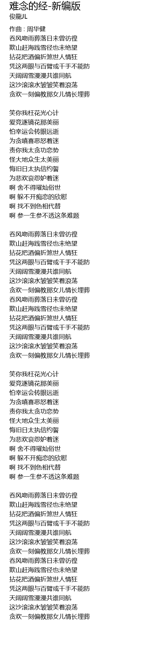 | Song | 难念的经-新编版 |