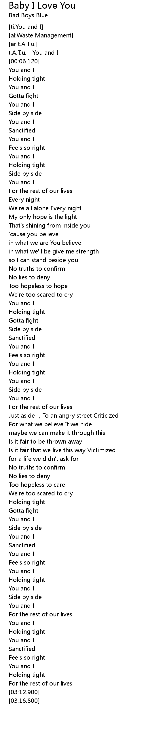 | [00:00.540] | t. A. T. u. You and I |