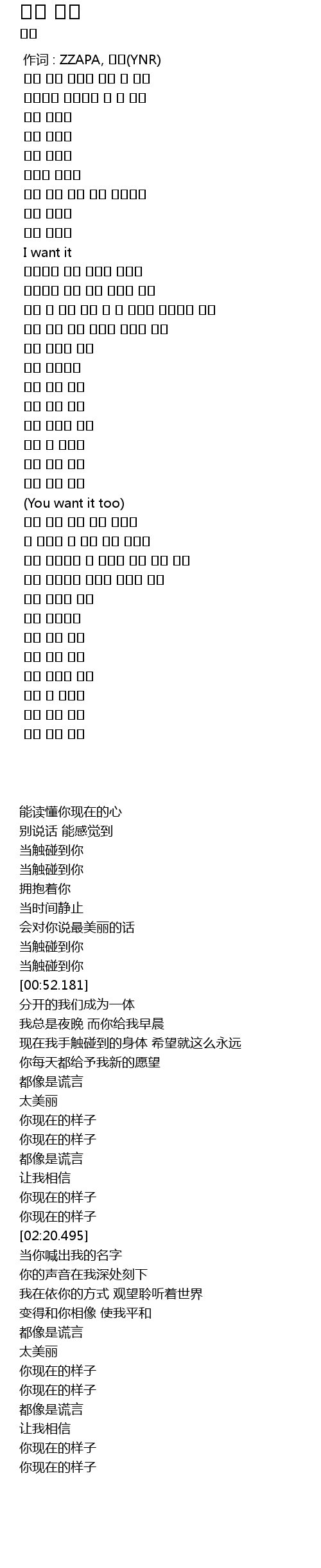 | [00:00.000] | 作词 : ZZAPA, 이날(YNR) |
