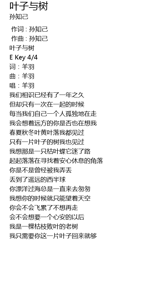 | [01:33.478] | zhǐ yǒu yī piàn yè zi de shù wǒ yě jiàn guò |