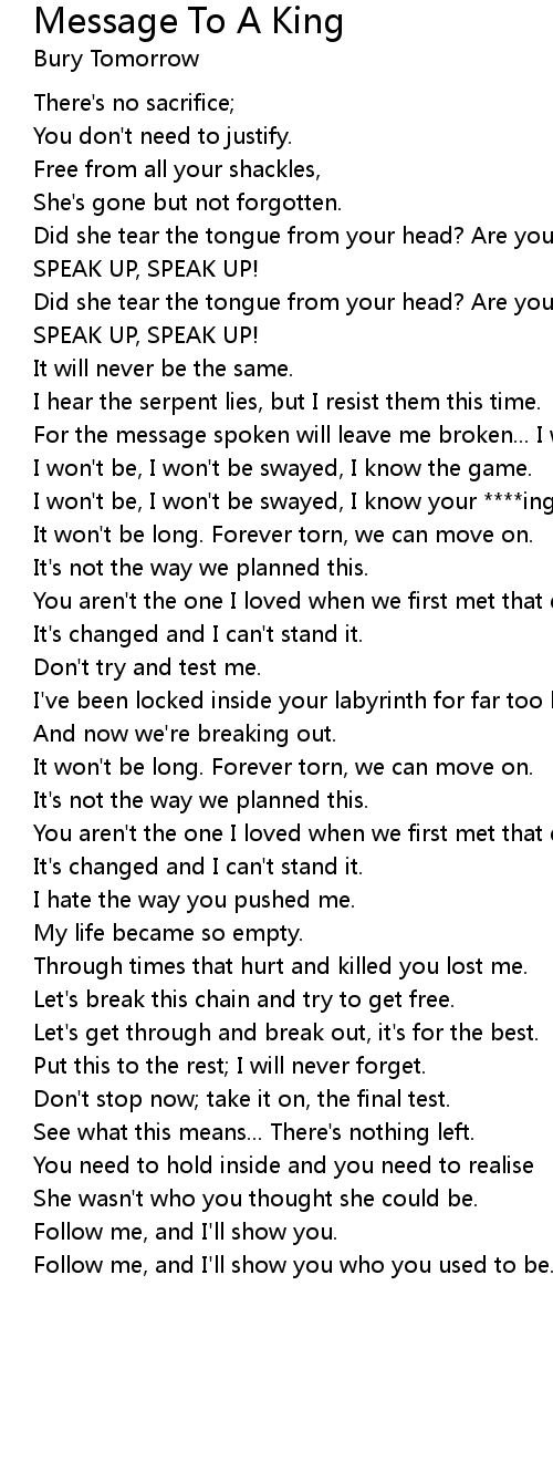 For the message spoken will leave me broken... I will suffocate. |