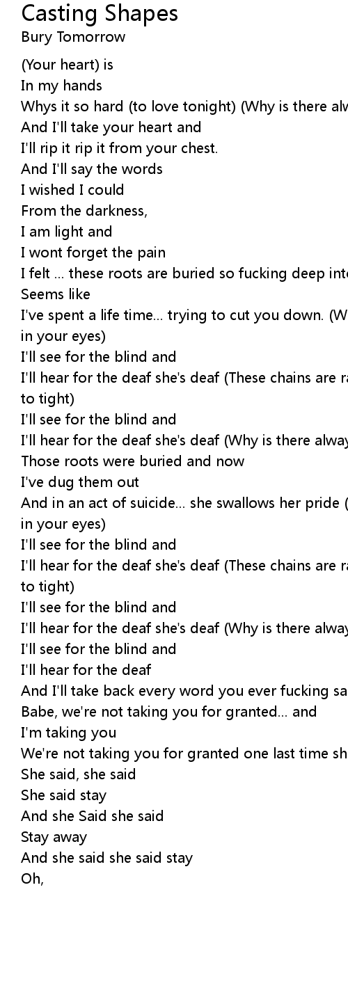 I'll hear for the deaf she's deaf (These chains are rapped around your lungs far to tight) |