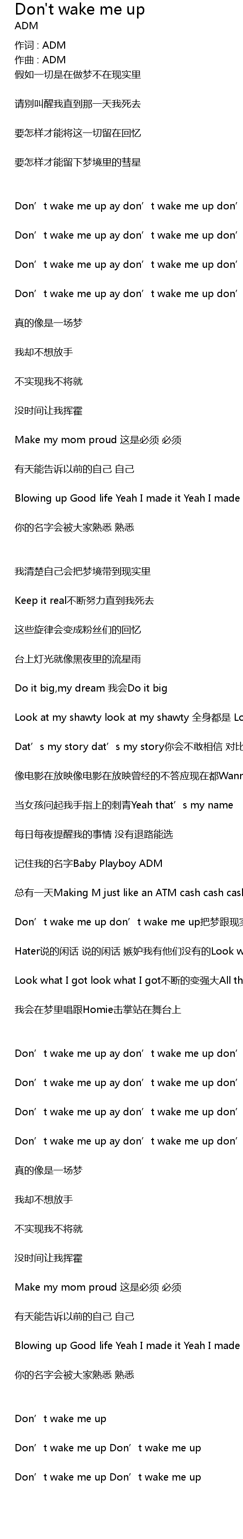 | Don' t wake me up ay don' t wake me up don' t wake me up | |