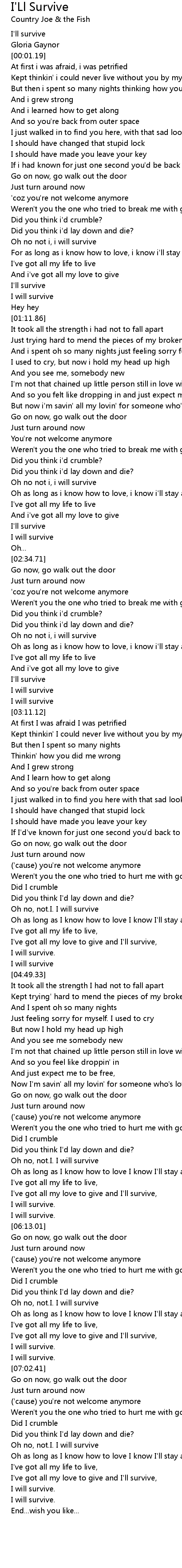 Oh no, not.I. I will survive |