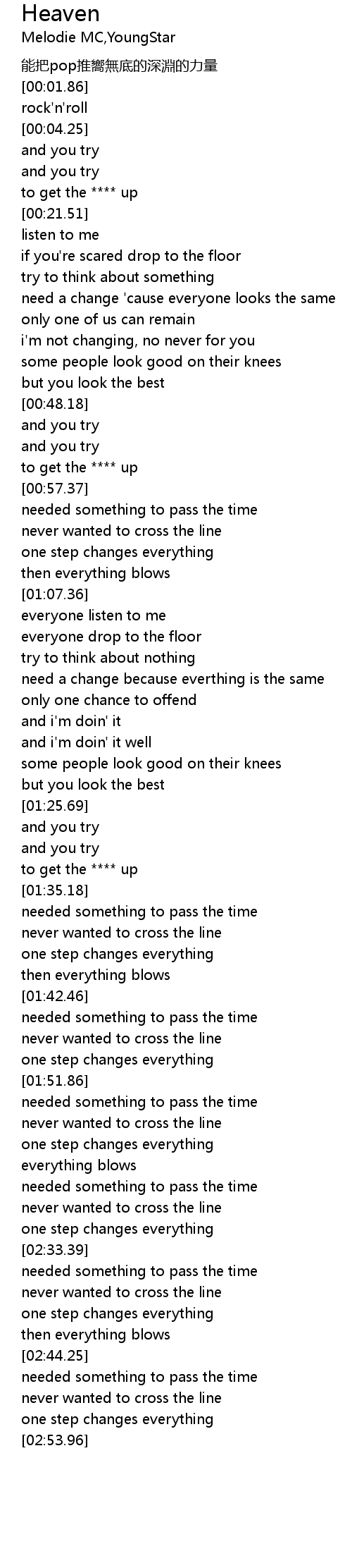 | [00:32.65] | need a change 'cause everyone looks the same |