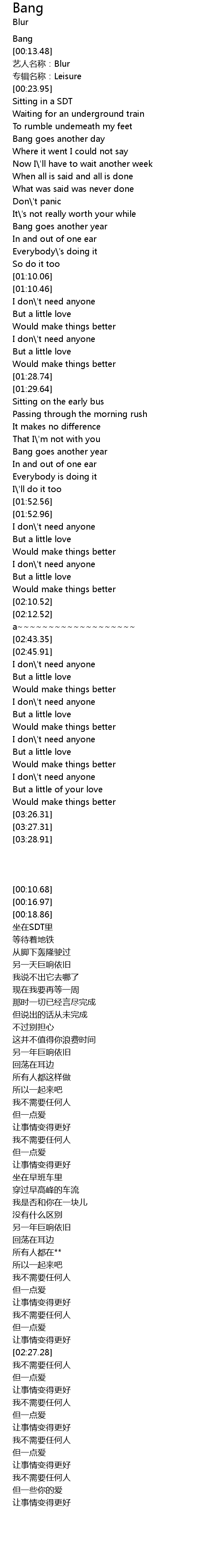 | [00:16.97] | yì rén míng chēng: Blur |