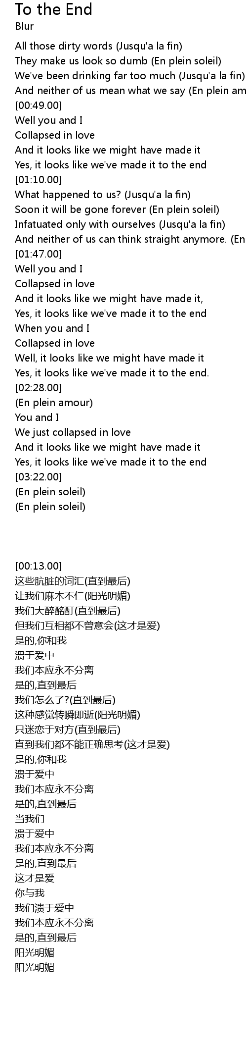 | [00:37.00] | We've been drinking far too much (Jusqu'a la fin) |