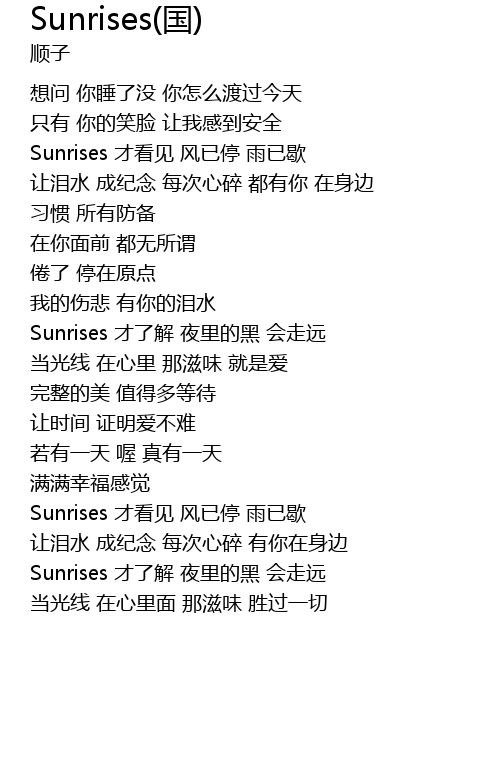 | [02:49.829] | Sunrises cái kàn jiàn fēng yǐ tíng yǔ yǐ xiē |