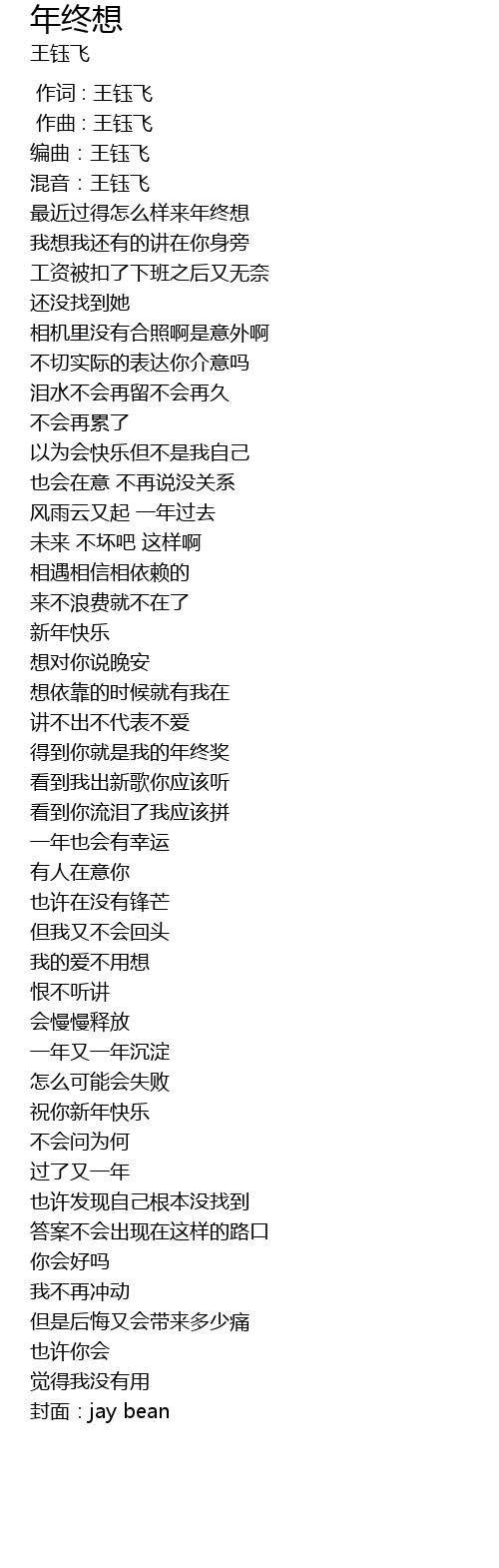 | [00:02.193] | 编曲:王钰飞 |