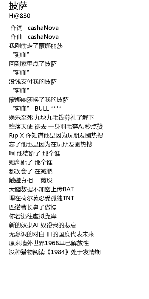 | Song | 披萨 |