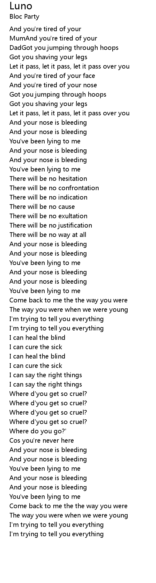 And your nose is bleeding |
