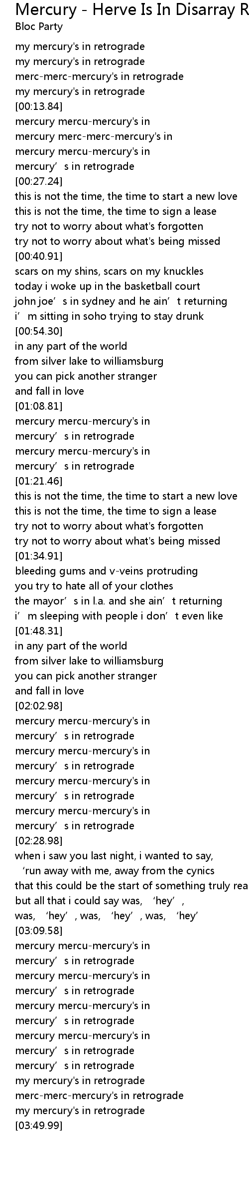 | [03:43.32] | mercmercmercury' s in retrograde |
