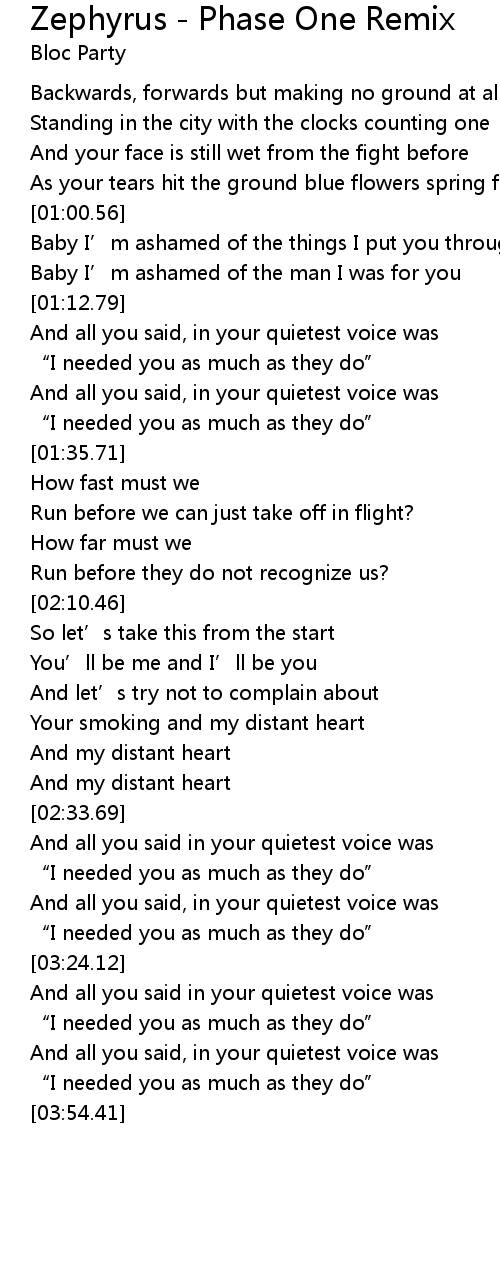 | [01:13.01] | And all you said, in your quietest voice was |