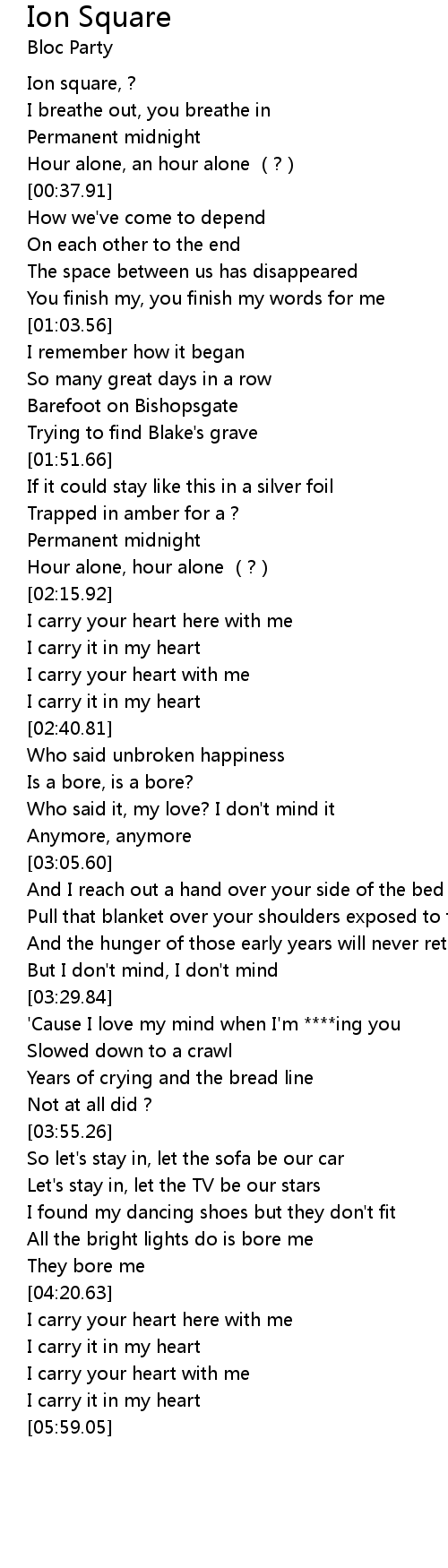 | [03:06.36] | And I reach out a hand over your side of the bed |