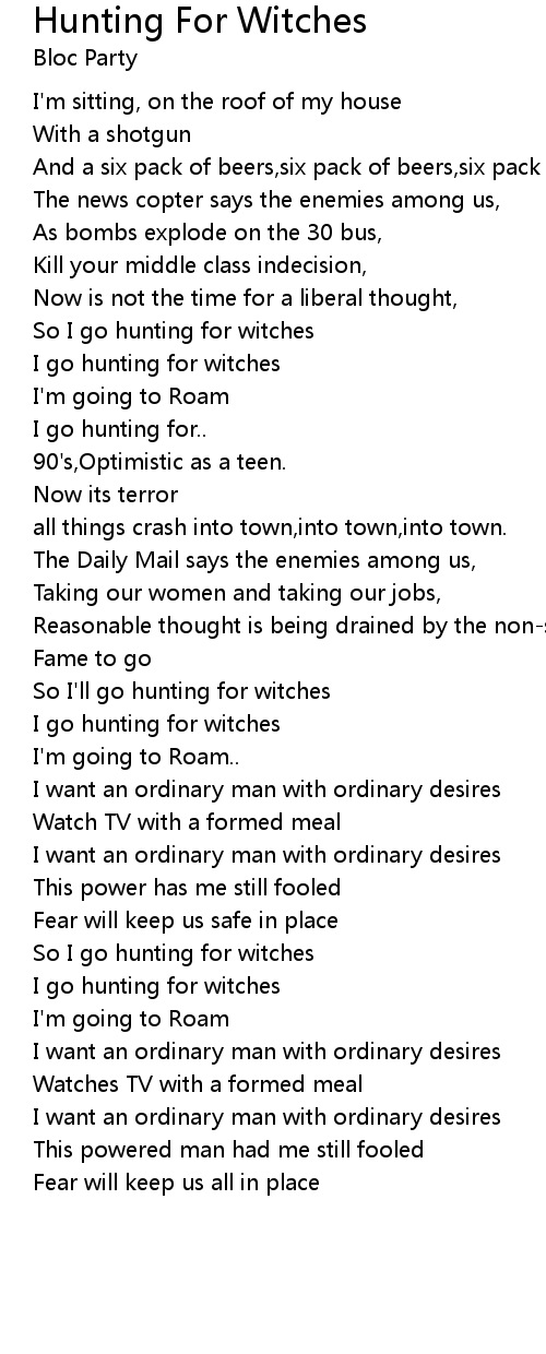 So I go hunting for witches |