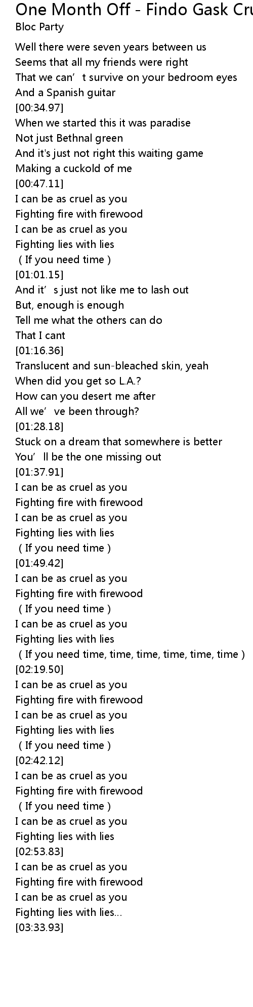 | Song | One Month Off - Findo Gask Cruel And Unusual Mix |