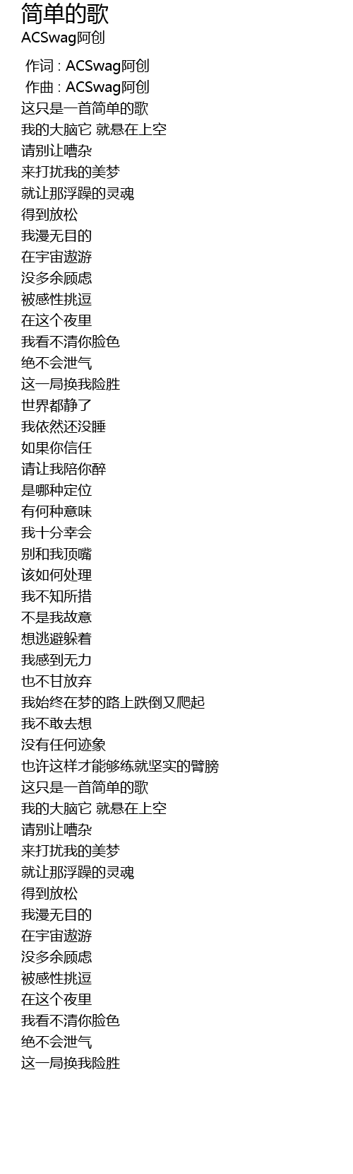 | [00:01.000] | 作曲 : ACSwag阿创 |