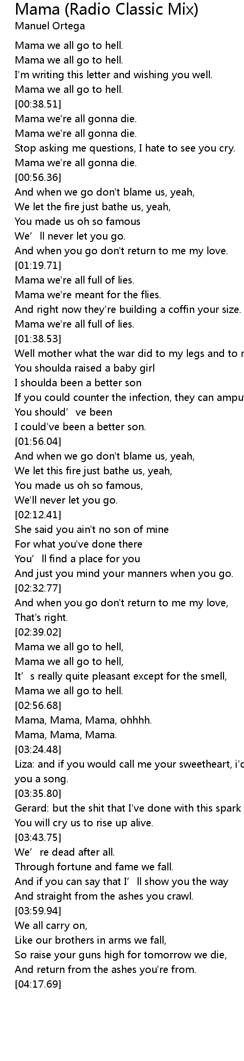 | [02:58.13] | Mama, Mama, Mama, ohhhh. |