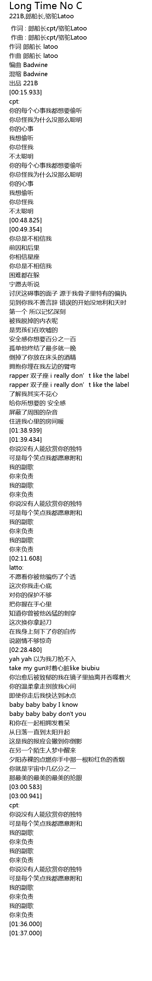 | [00:01.000] | 作曲 : 郎船长cpt/骆驼Latoo |