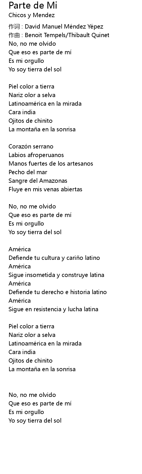 | 作词 : David Manuel Méndez Yépez | |