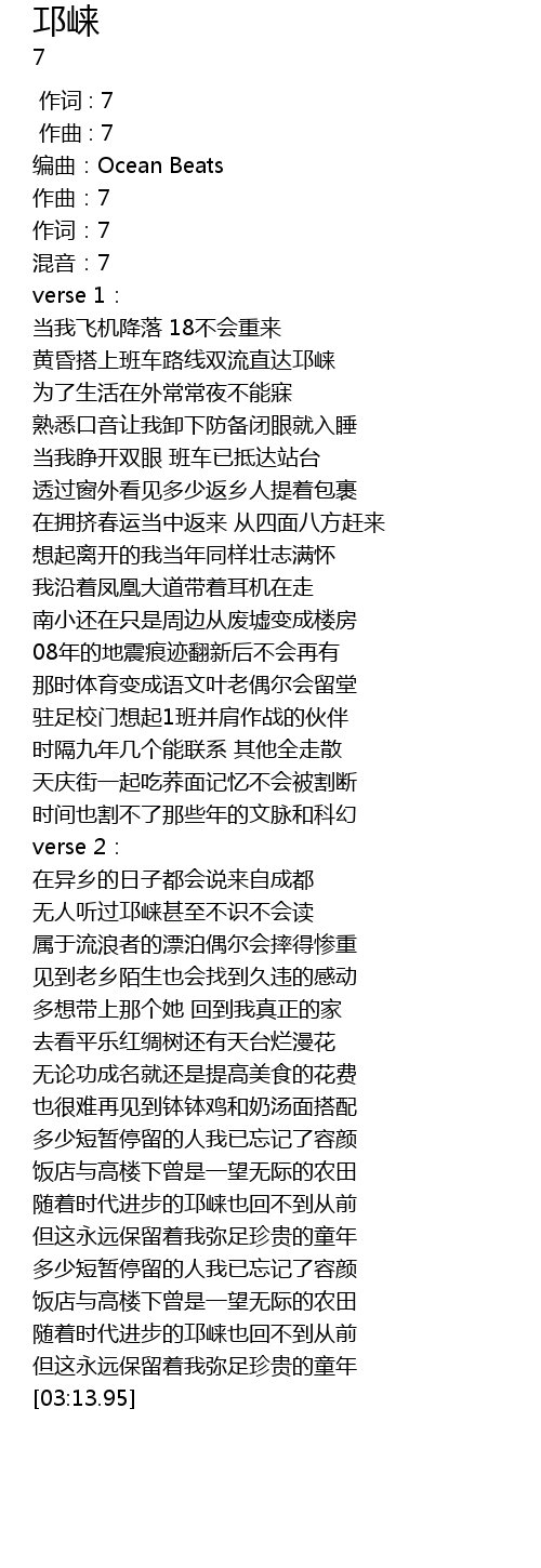| [02:33.65] | 随着时代进步的邛崃也回不到从前 |