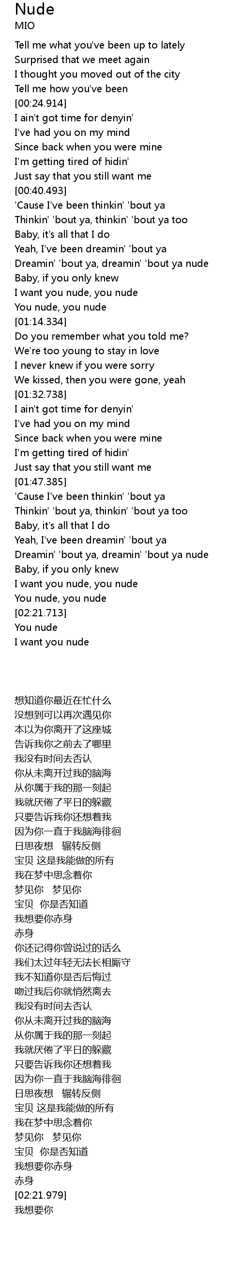 Dreamin' 'bout ya, dreamin' 'bout ya nude |