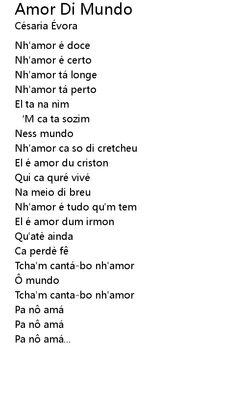| Song | Amor Di Mundo |