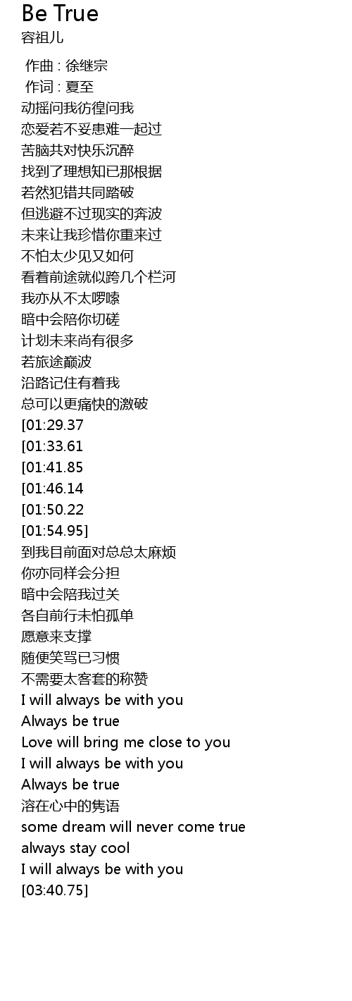 | [02:54.14][01:46.14] | Always be true |