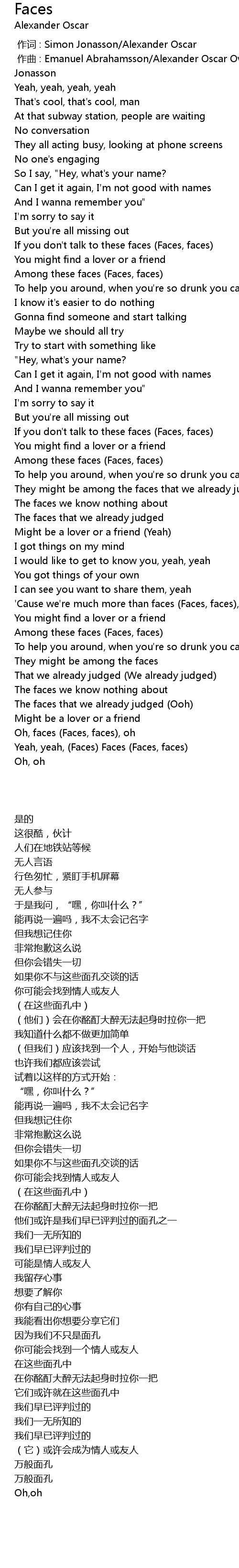 | [02:48.93] | Oh, faces (Faces, faces), oh |