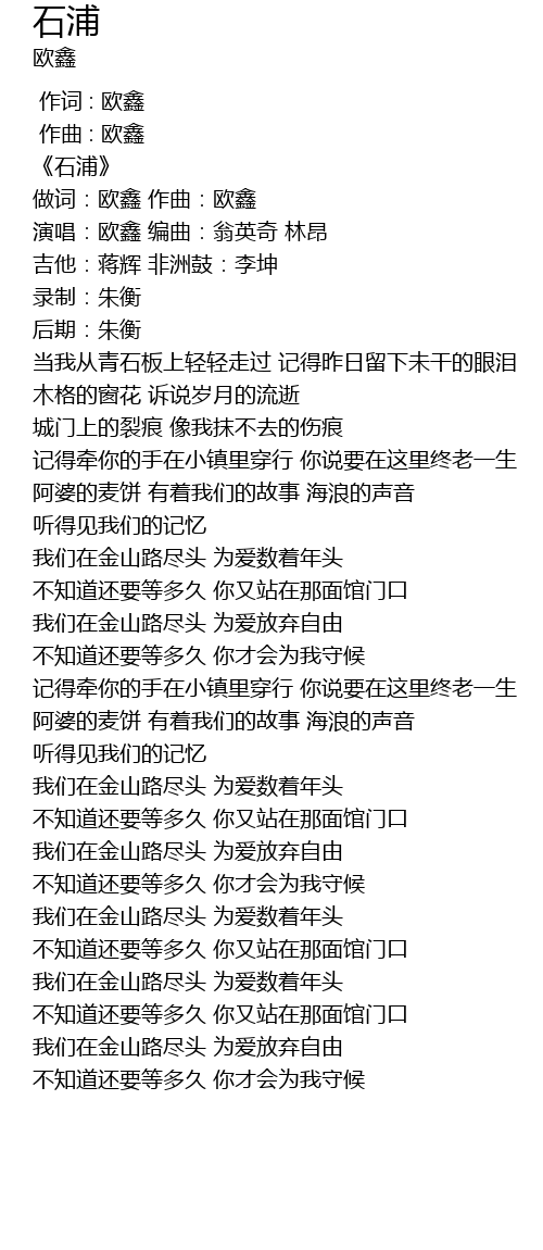 | [00:05.458] | 做词:欧鑫 作曲:欧鑫 |