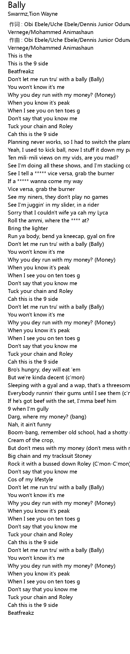 | [02:14.91] | Don't let me run tru' with a bally (Bally) |