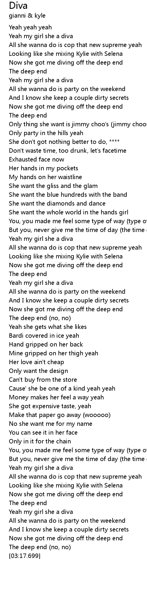Yeah my girl she a diva |