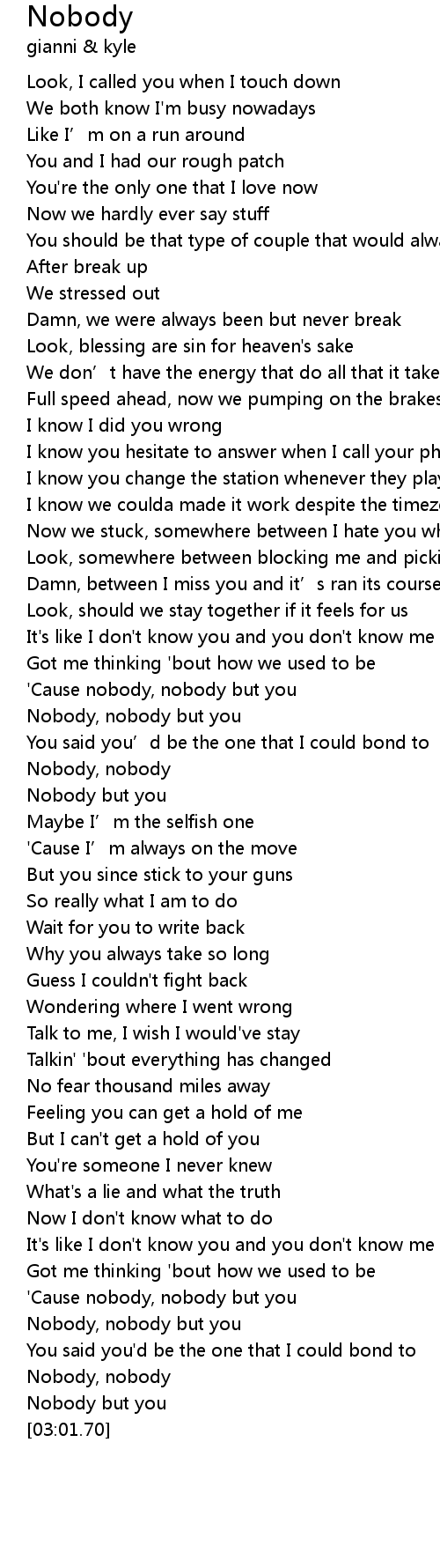 | [01:25.81] | Nobody, nobody |