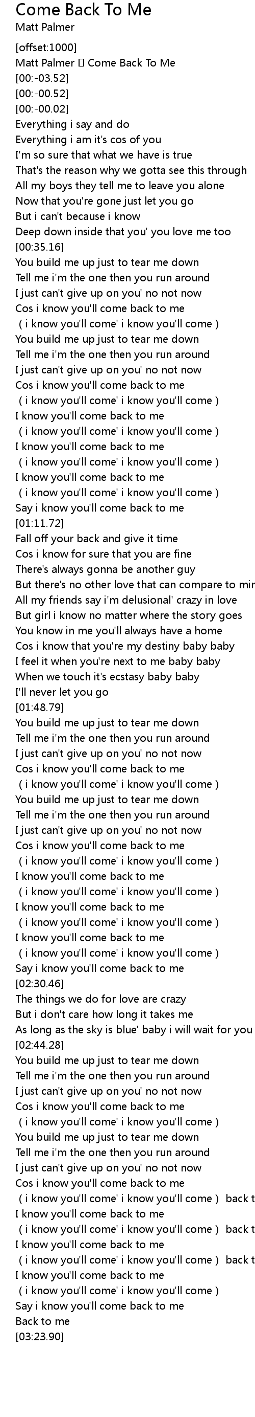 | [00:-07.52] | Matt Palmer Come Back To Me |