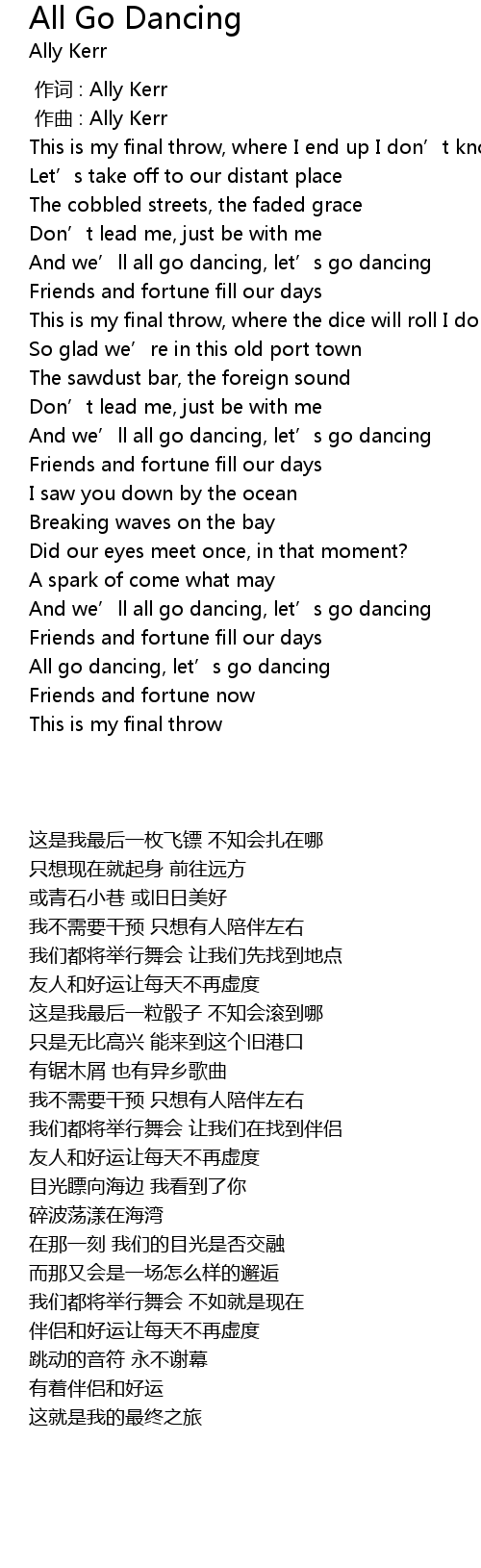 | [00:59.006] | And we' ll all go dancing, let' s go dancing |