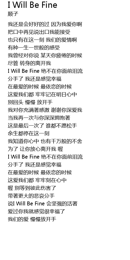 | [03:14.860] | 说I Will Be Fine 会坚强的活著 |