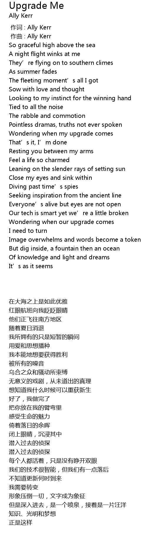 | [00:00.000] | 作词 : Ally Kerr |
