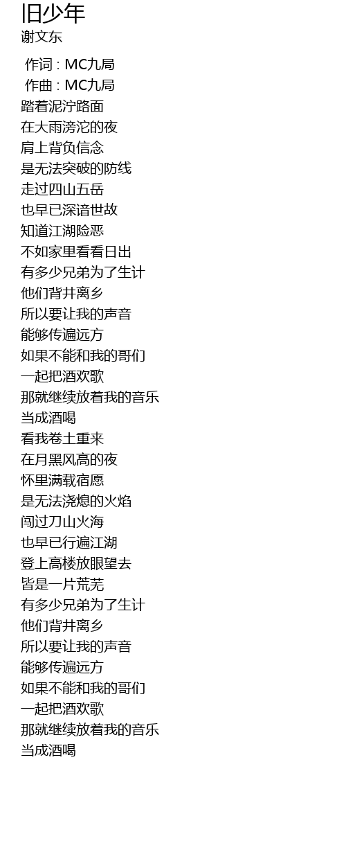 | [00:00.000] | 作词 : MC九局 |