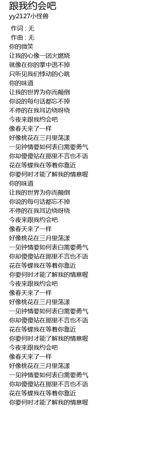 | [01:39.318] | 今夜来跟我约会吧 |