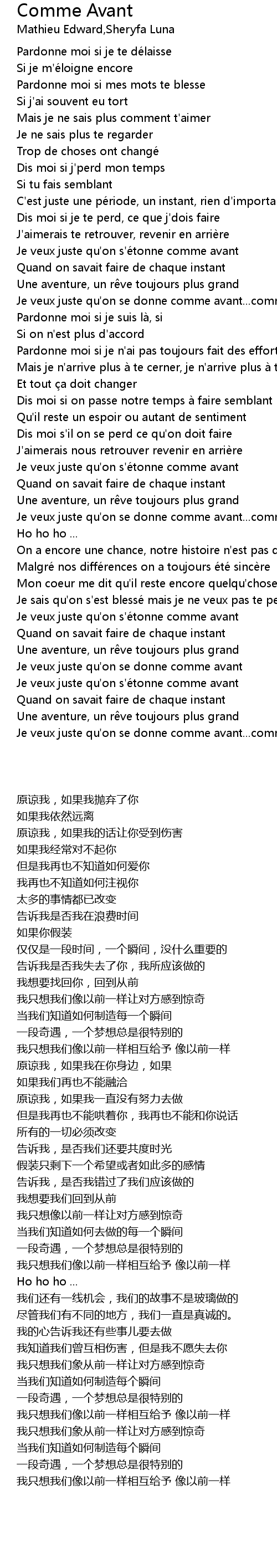 | [03:18.22] | Je veux juste qu' on se donne comme avant... comme avant |