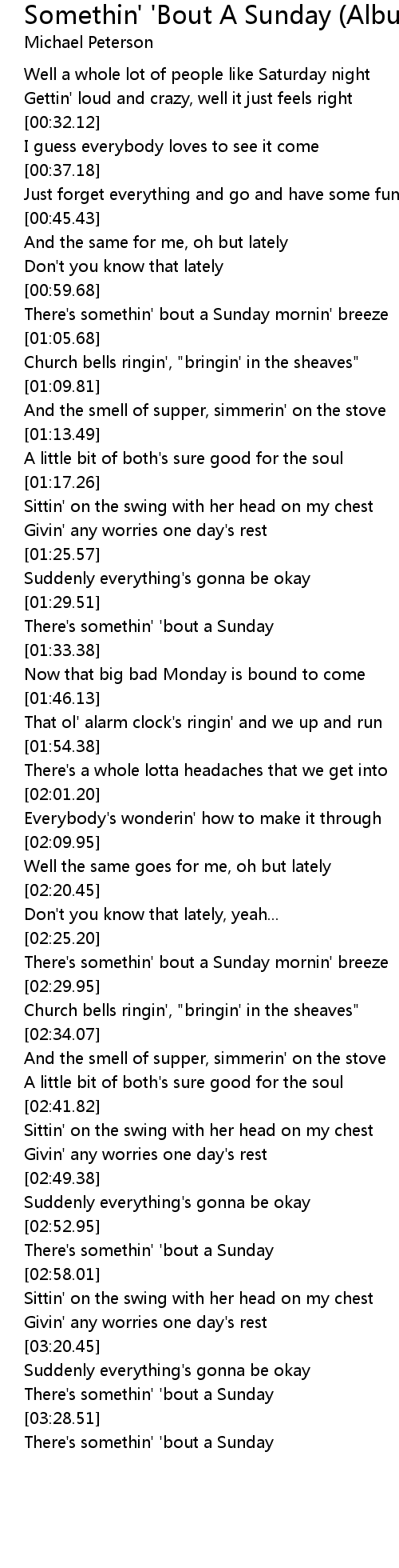 There's somethin' 'bout a Sunday |