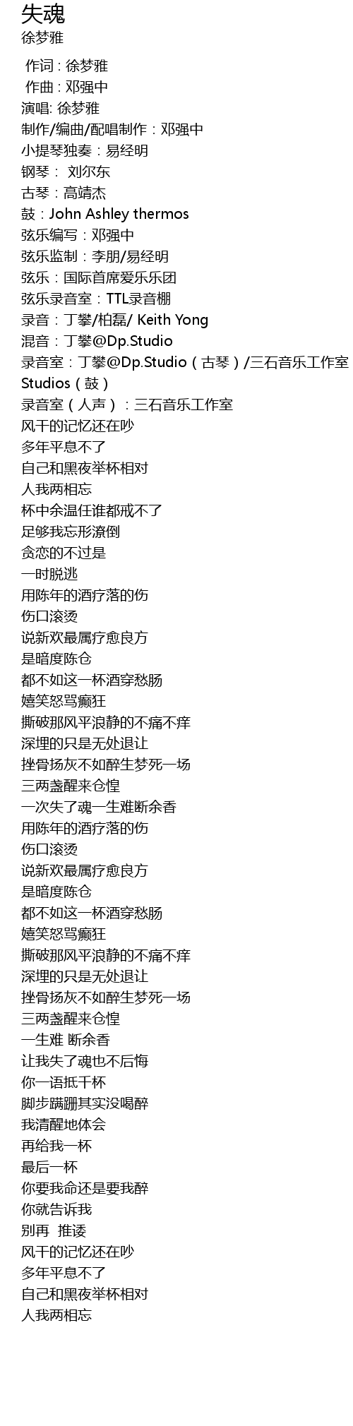 | [00:19.53] | 录音室:丁攀@Dp.Studio(古琴)/三石音乐工作室(小提琴)/Nomad Studios(鼓) |