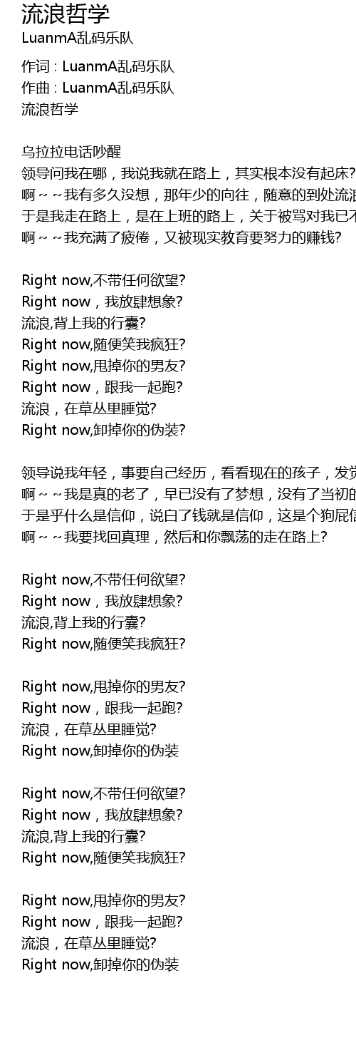 | 作词 : LuanmA乱码乐队 | |