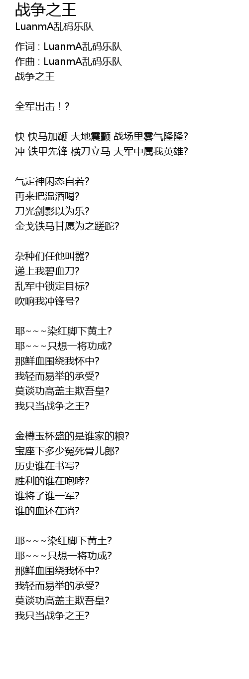| wǒ zhǐ dāng zhàn zhēng zhī wáng? | |