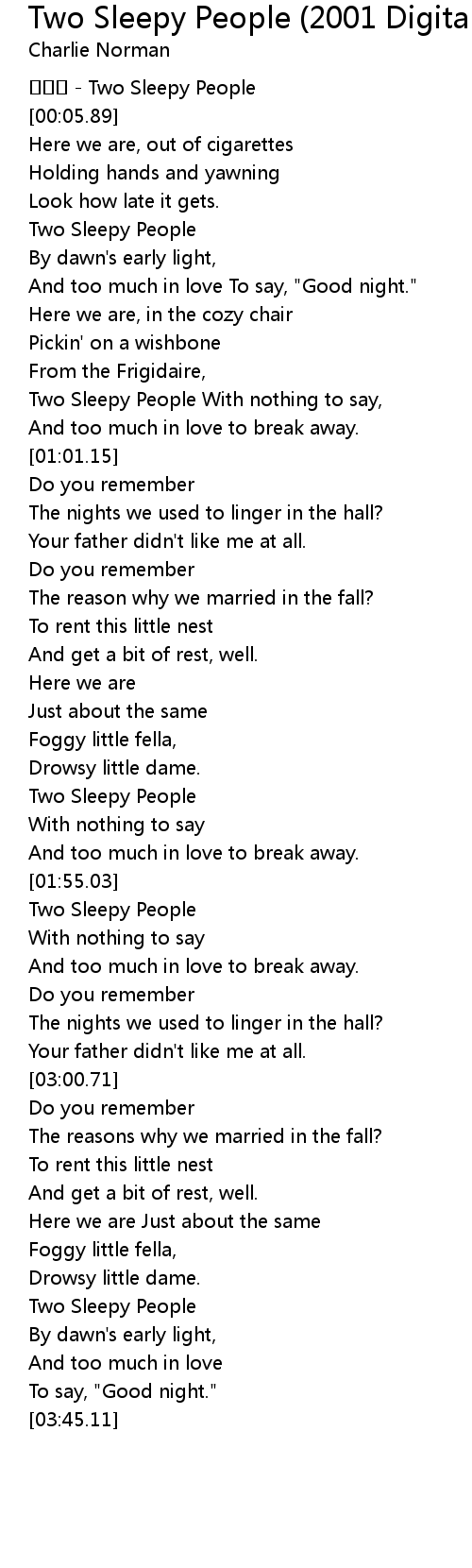 | [00:48.94] | Two Sleepy People With nothing to say, |
