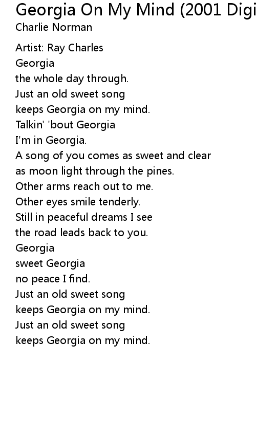Georgia On My Mind (2001 Digital Remaster) Lyrics