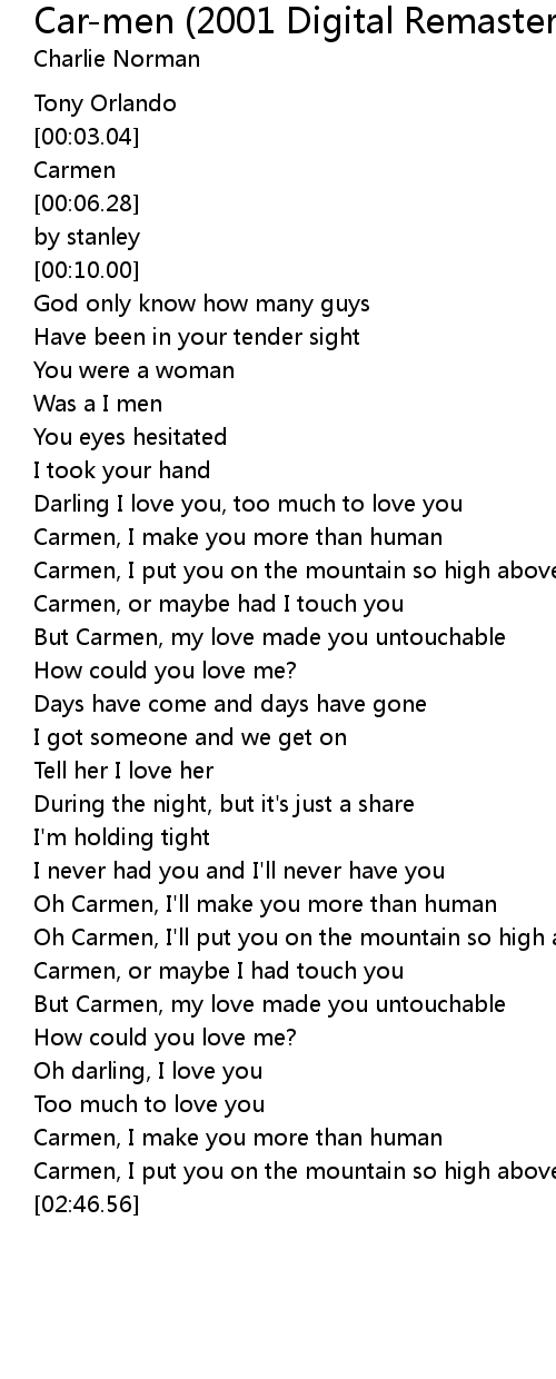 [00:41.48] Carmen, I put you on the mountain so high above me