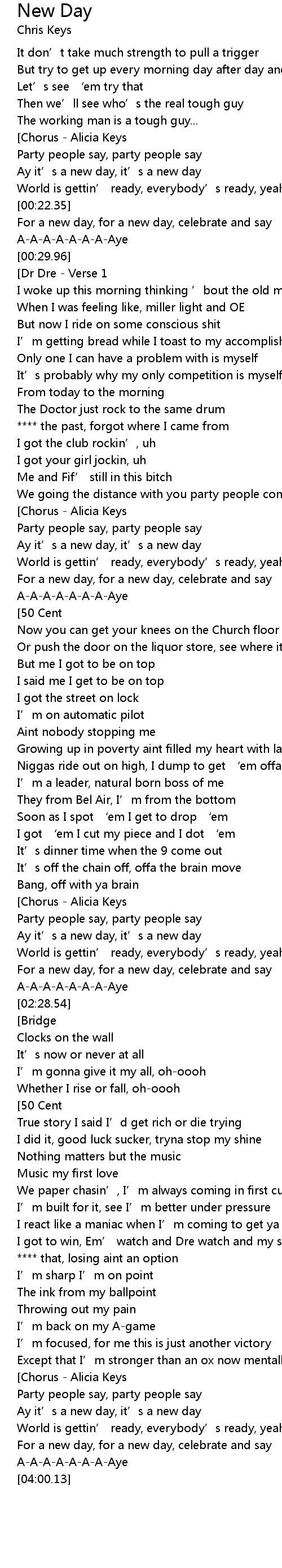 | [00:08.43][Chorus - Alicia Keys] | |
